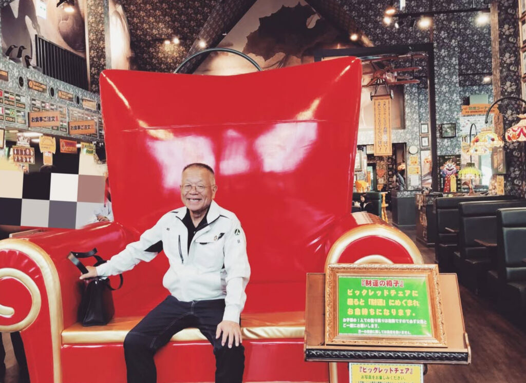 名物「財運の椅子」でのワンシーン